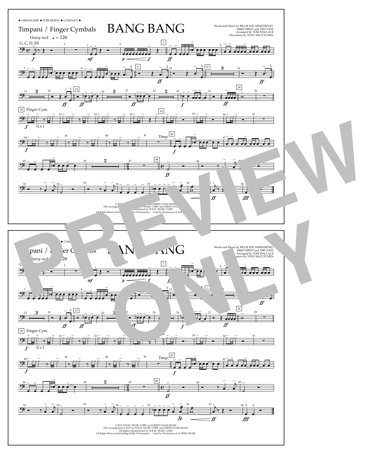 Download or print Tom Wallace Bang Bang - Timpani/Finger Cym. sheet music, chords and digital score arranged for Marching Band. This Rock score includes 1 page(s).