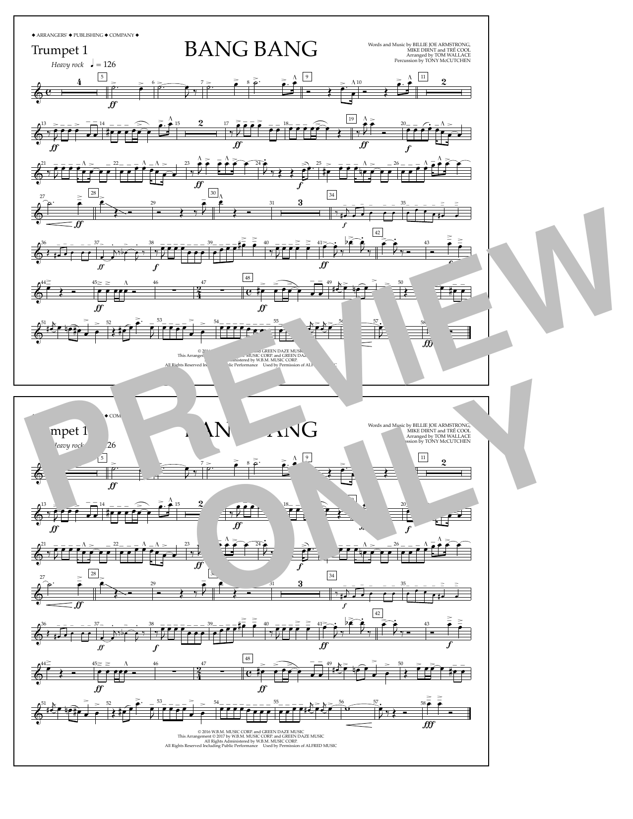 Download or print Tom Wallace Bang Bang - Trumpet 1 sheet music, chords and digital score arranged for Marching Band. This Pop score includes 1 page(s).