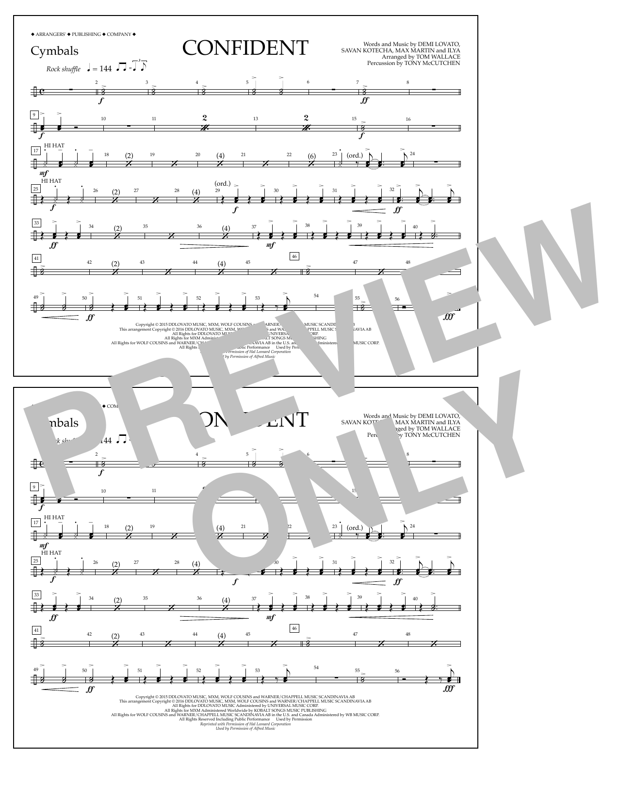 Download or print Tom Wallace Confident - Cymbals sheet music, chords and digital score arranged for Marching Band. This Pop score includes 1 page(s).