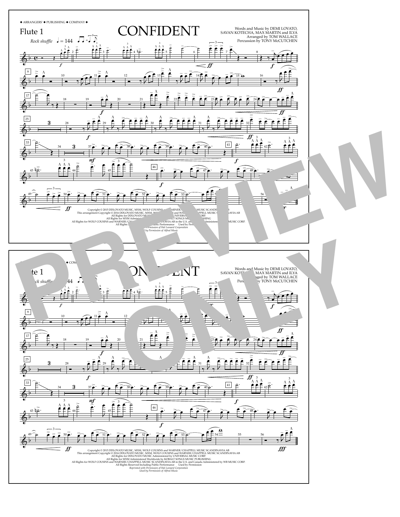Download or print Tom Wallace Confident - Flute 1 sheet music, chords and digital score arranged for Marching Band. This Pop score includes 1 page(s).