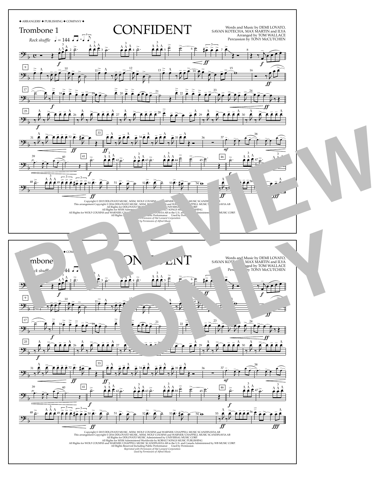 Download or print Tom Wallace Confident - Trombone 1 sheet music, chords and digital score arranged for Marching Band. This Pop score includes 1 page(s).