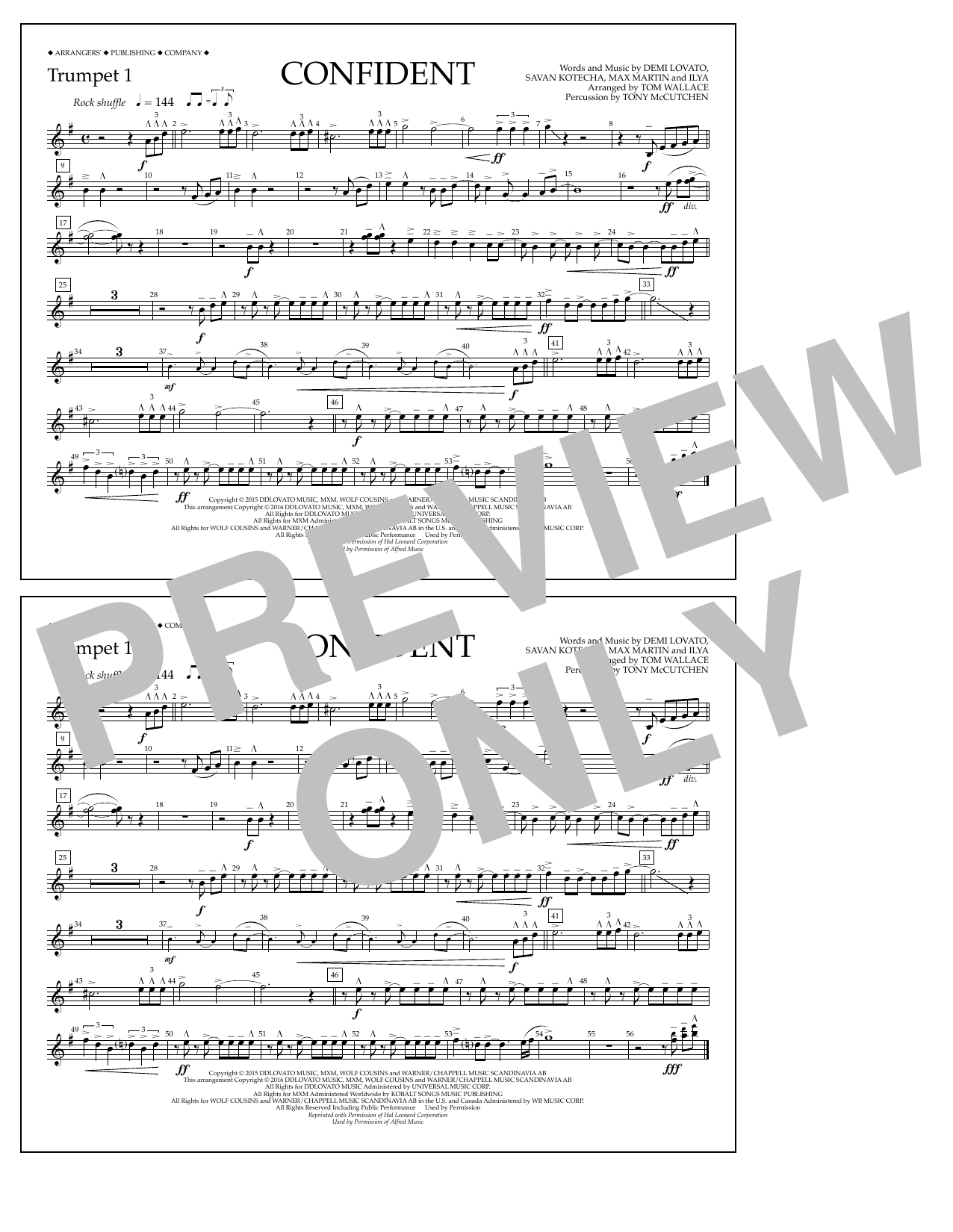 Download or print Tom Wallace Confident - Trumpet 1 sheet music, chords and digital score arranged for Marching Band. This Pop score includes 1 page(s).