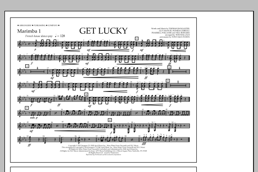 Download or print Tom Wallace Get Lucky - Marimba 1 sheet music, chords and digital score arranged for Marching Band. This Pop score includes 1 page(s).