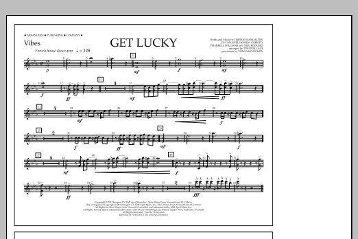 Download or print Tom Wallace Get Lucky - Vibes sheet music, chords and digital score arranged for Marching Band. This Pop score includes 1 page(s).