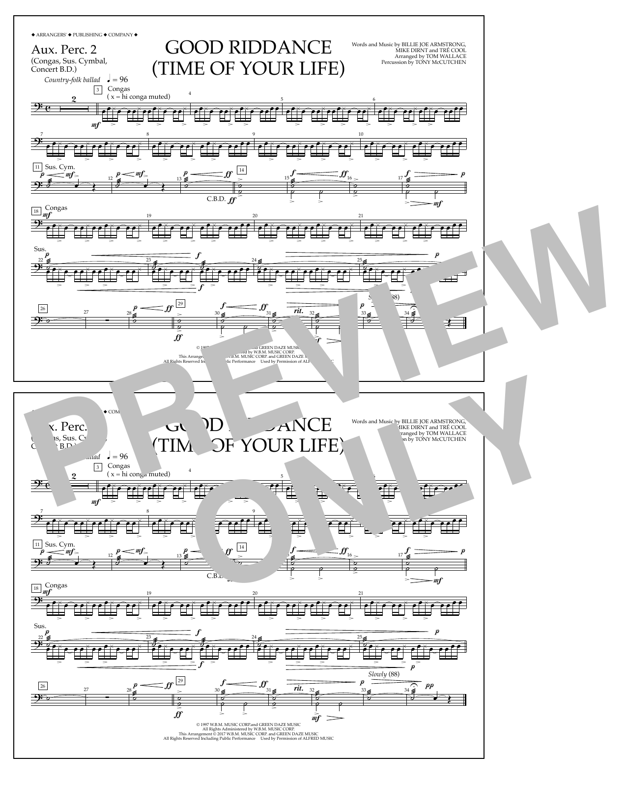 Download or print Tom Wallace Good Riddance (Time of Your Life) - Aux. Perc. 2 sheet music, chords and digital score arranged for Marching Band. This Pop score includes 1 page(s).