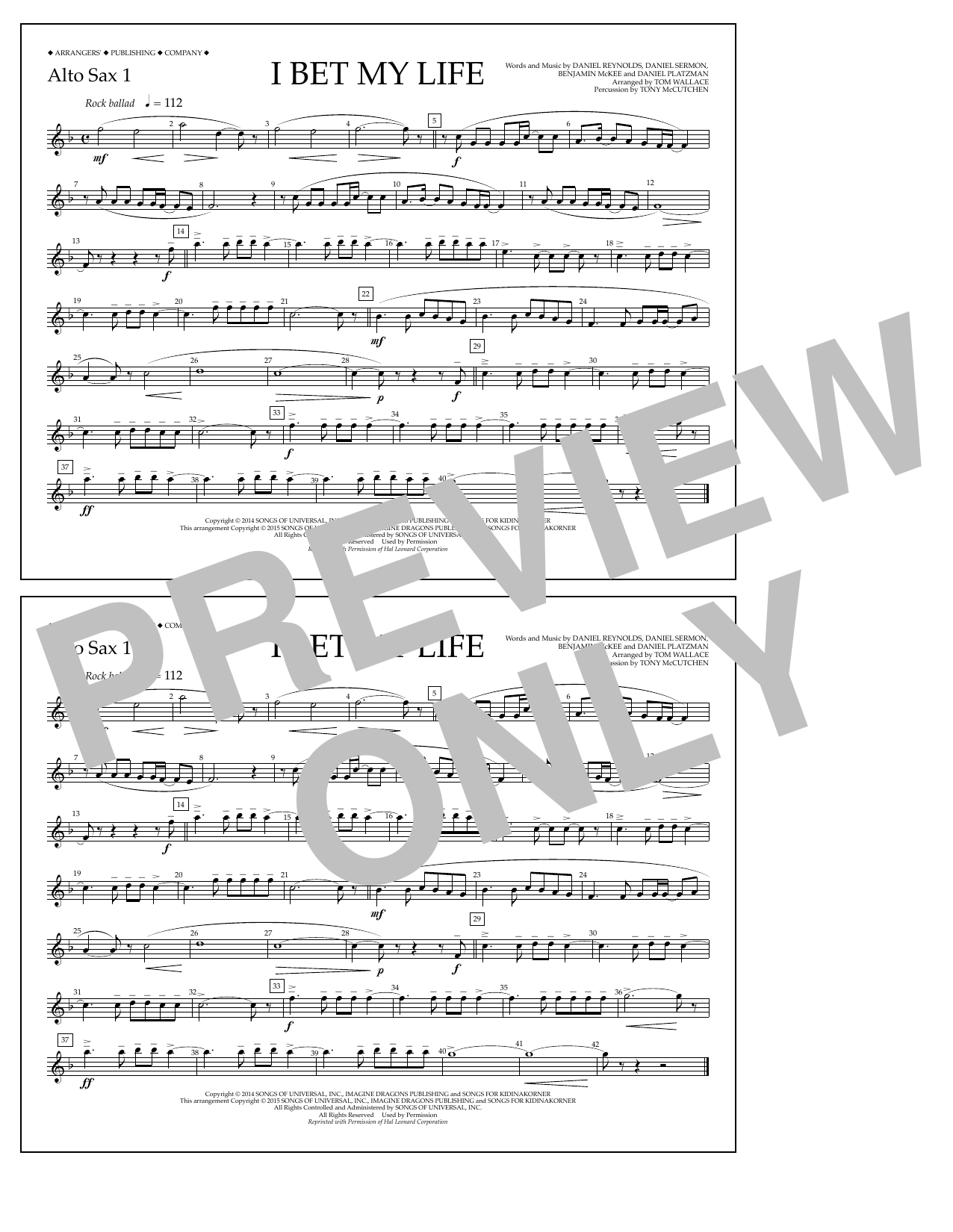 Download or print Tom Wallace I Bet My Life - Alto Sax 1 sheet music, chords and digital score arranged for Marching Band. This Rock score includes 1 page(s).