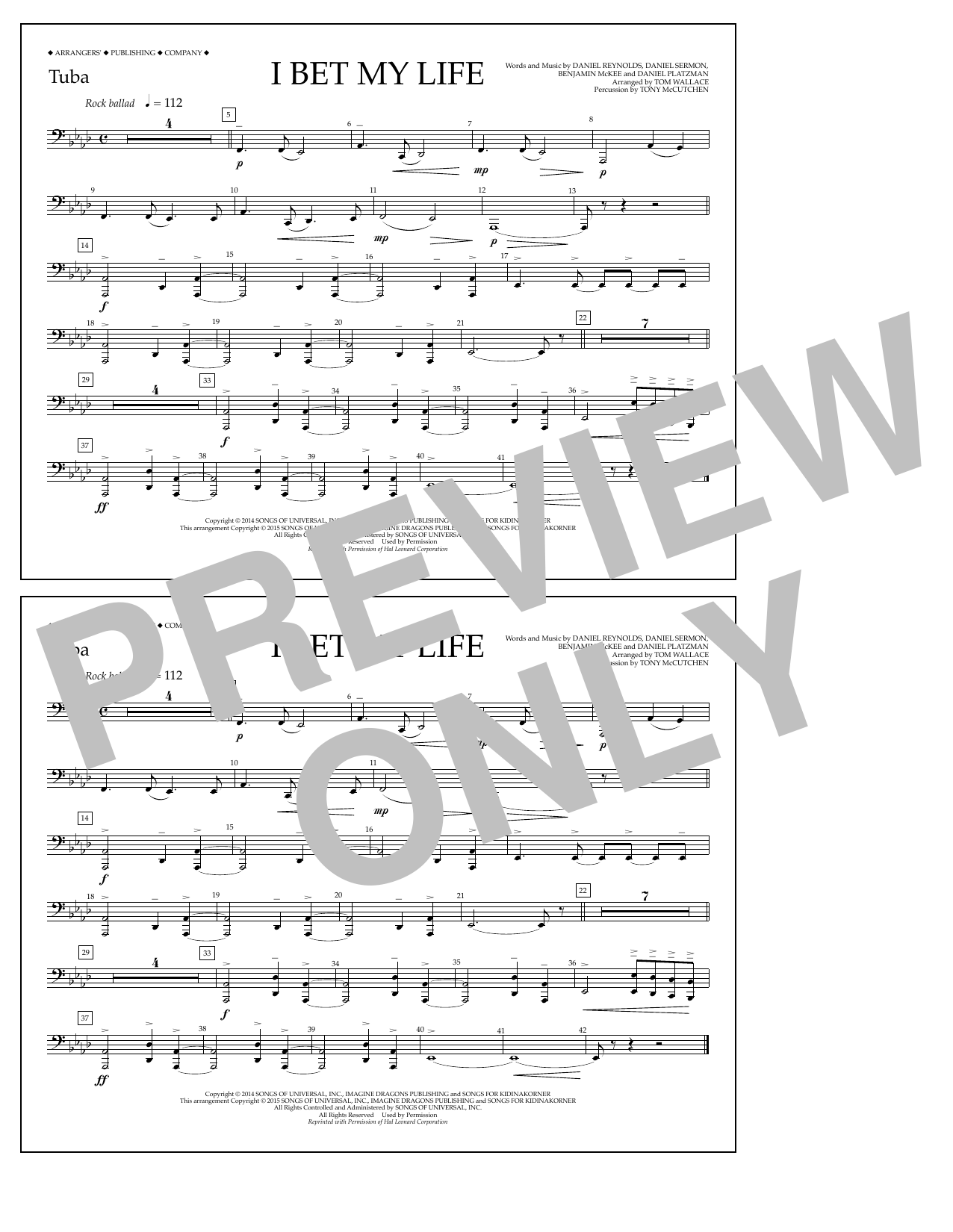 Download or print Tom Wallace I Bet My Life - Tuba sheet music, chords and digital score arranged for Marching Band. This Rock score includes 1 page(s).