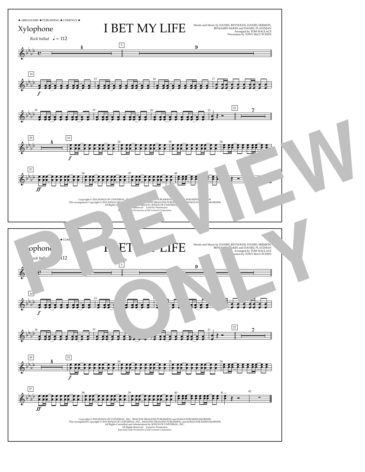 Download or print Tom Wallace I Bet My Life - Xylophone sheet music, chords and digital score arranged for Marching Band. This Rock score includes 1 page(s).