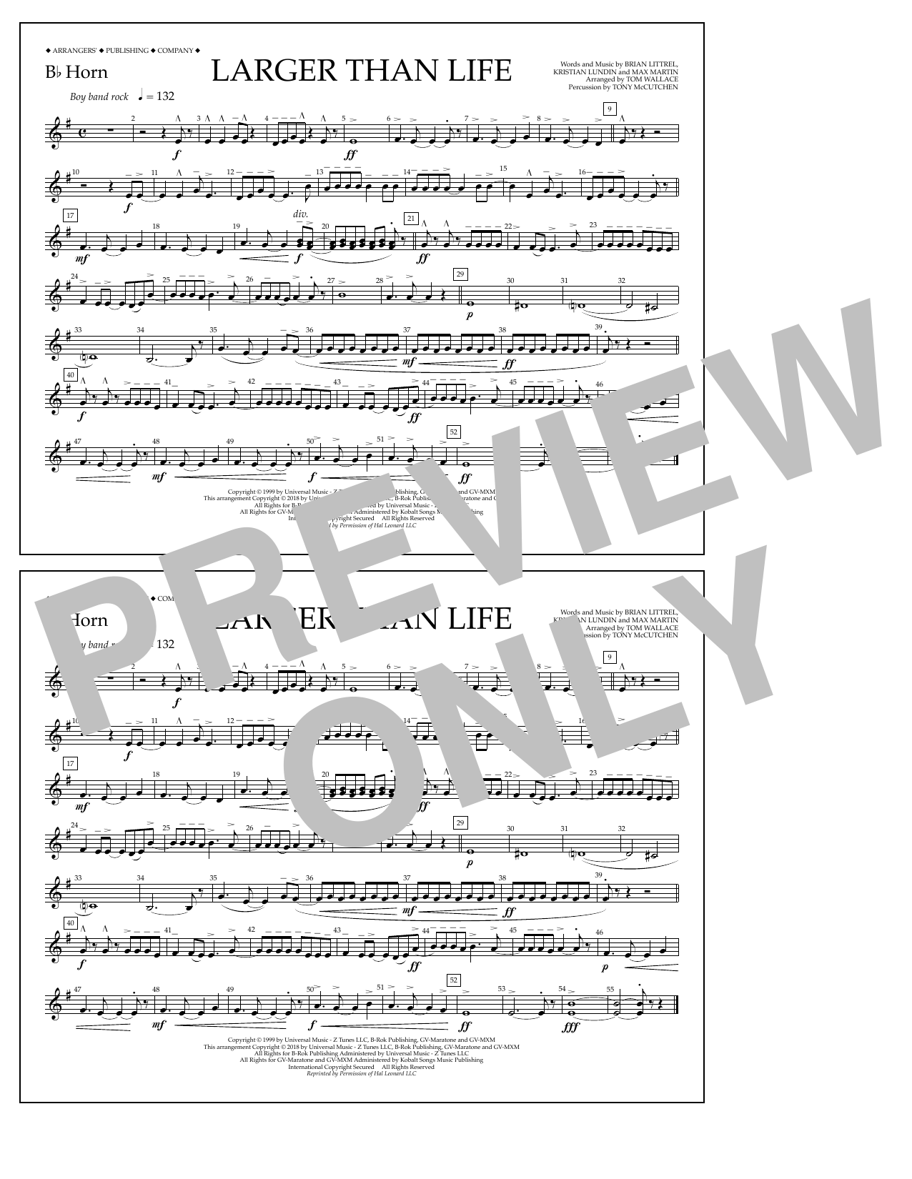 Download or print Tom Wallace Larger Than Life - Bb Horn sheet music, chords and digital score arranged for Marching Band. This Pop score includes 1 page(s).