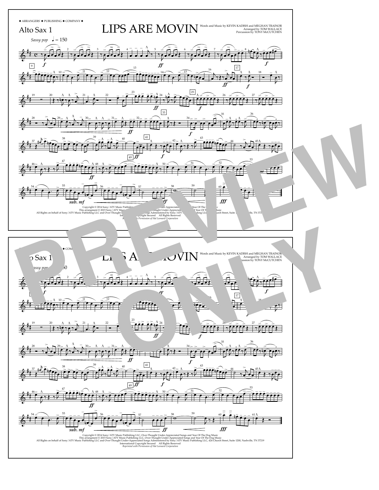 Download or print Tom Wallace Lips Are Movin - Alto Sax 1 sheet music, chords and digital score arranged for Marching Band. This Pop score includes 1 page(s).