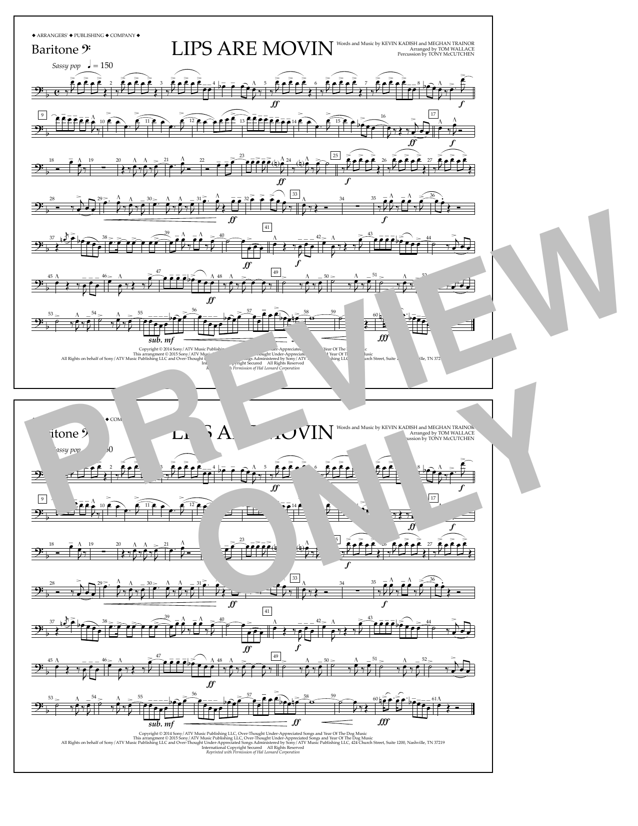 Download or print Tom Wallace Lips Are Movin - Baritone B.C. sheet music, chords and digital score arranged for Marching Band. This Pop score includes 1 page(s).