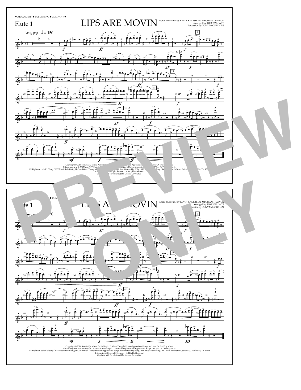 Download or print Tom Wallace Lips Are Movin - Flute 1 sheet music, chords and digital score arranged for Marching Band. This Pop score includes 1 page(s).