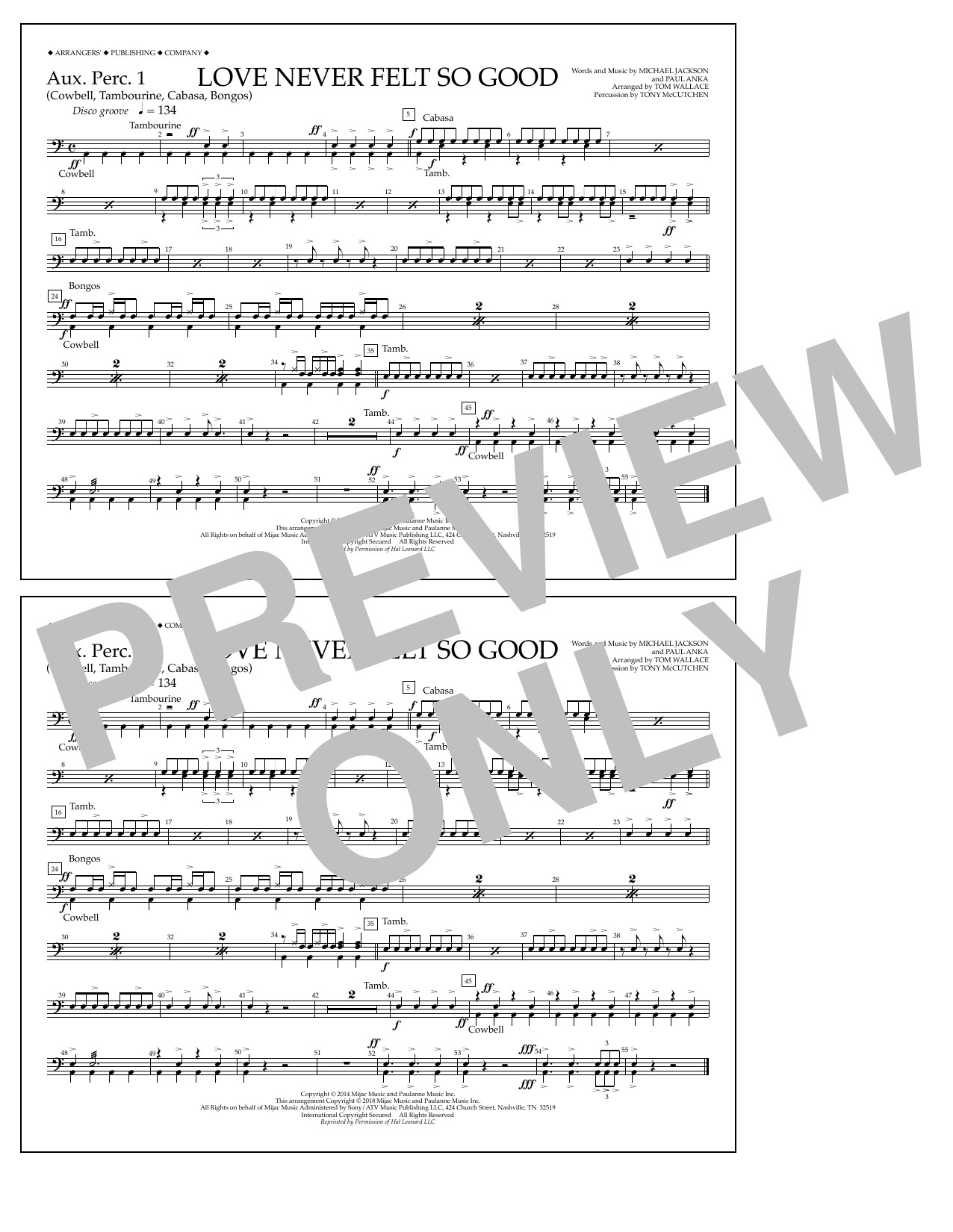 Download or print Tom Wallace Love Never Felt So Good - Aux. Perc. 1 sheet music, chords and digital score arranged for Marching Band. This Pop score includes 1 page(s).