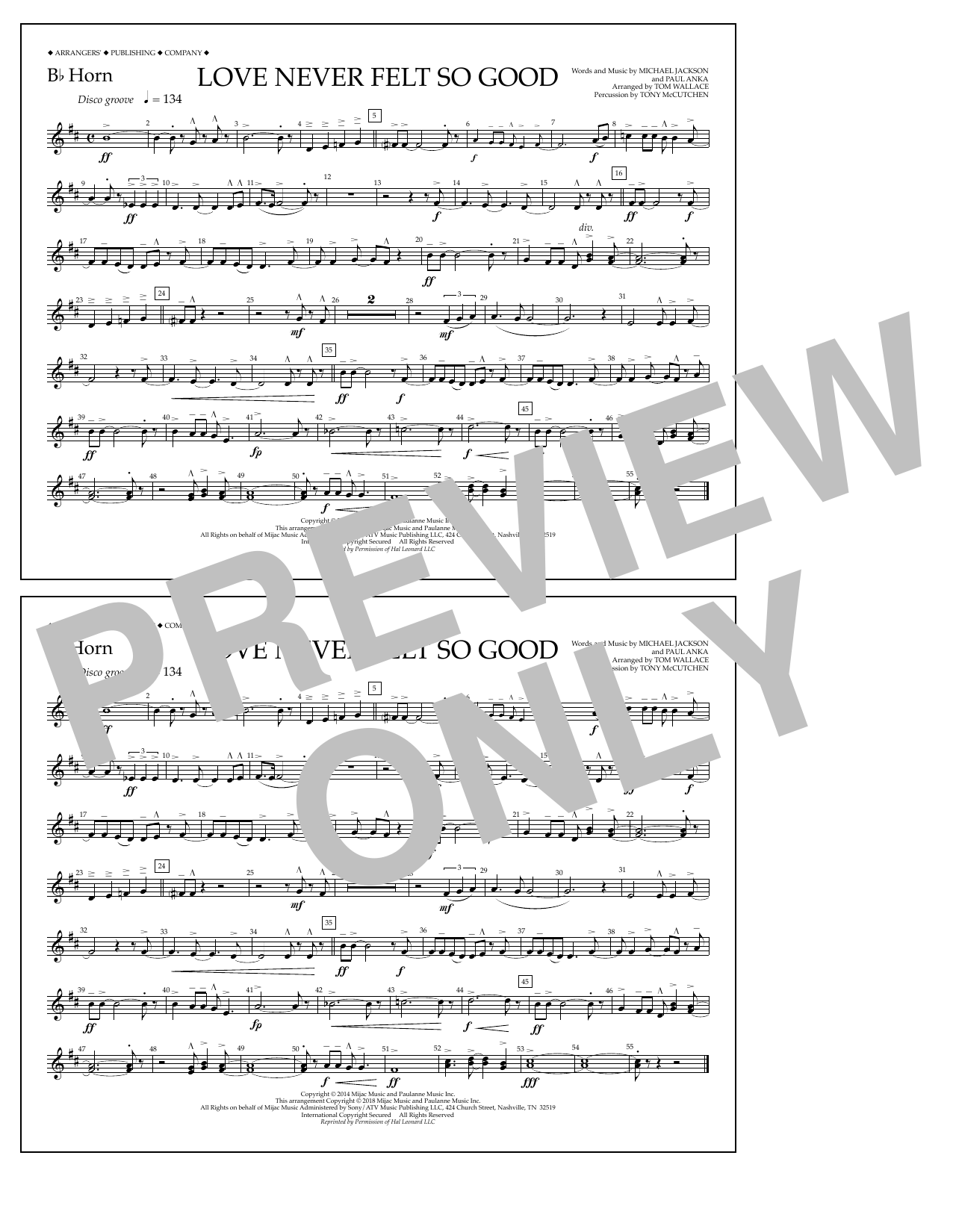 Download or print Tom Wallace Love Never Felt So Good - Bb Horn sheet music, chords and digital score arranged for Marching Band. This Pop score includes 1 page(s).