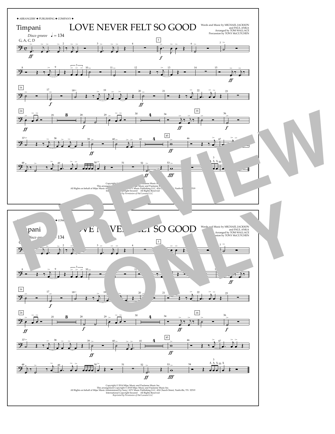 Download or print Tom Wallace Love Never Felt So Good - Timpani sheet music, chords and digital score arranged for Marching Band. This Pop score includes 1 page(s).