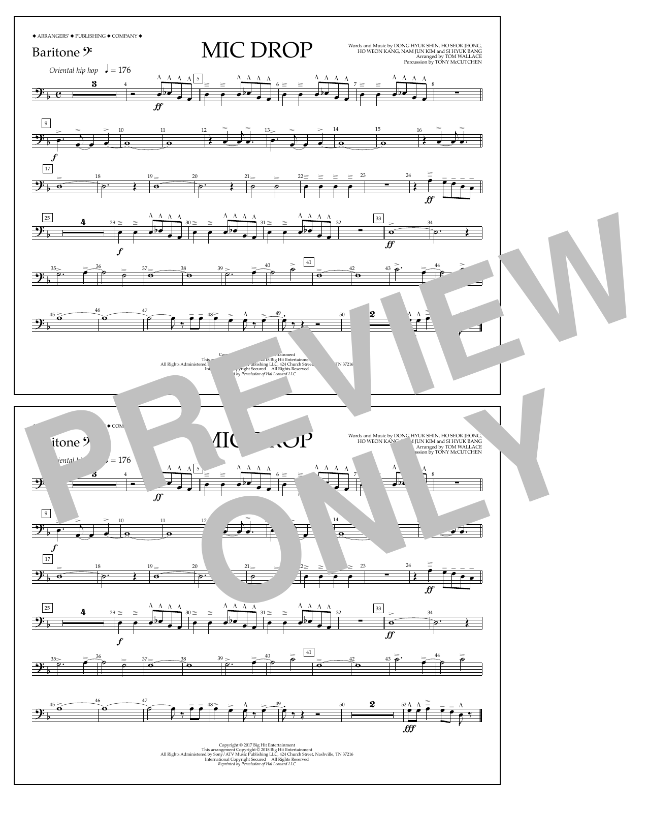 Download or print Tom Wallace Mic Drop - Baritone B.C. sheet music, chords and digital score arranged for Marching Band. This Pop score includes 1 page(s).