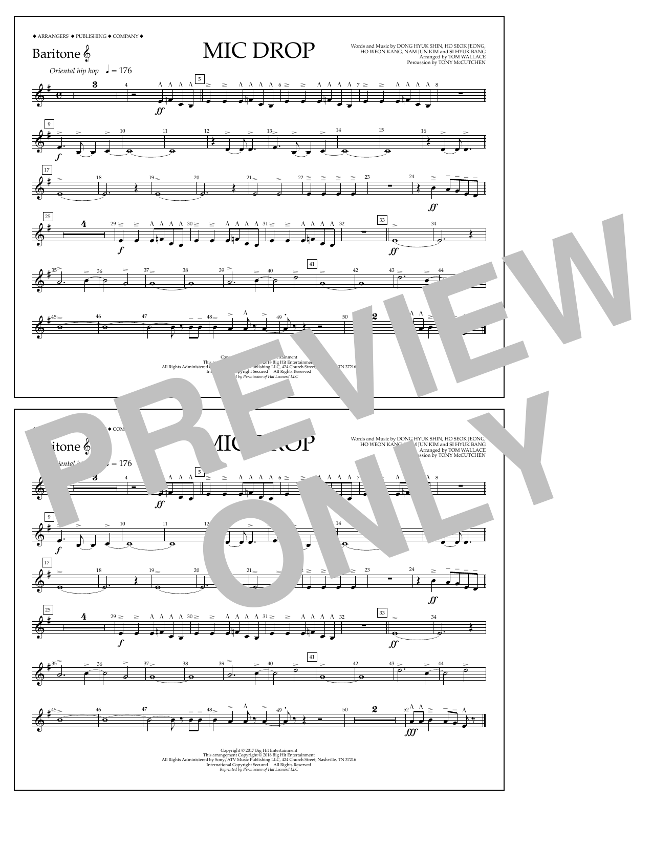 Download or print Tom Wallace Mic Drop - Baritone T.C. sheet music, chords and digital score arranged for Marching Band. This Pop score includes 1 page(s).