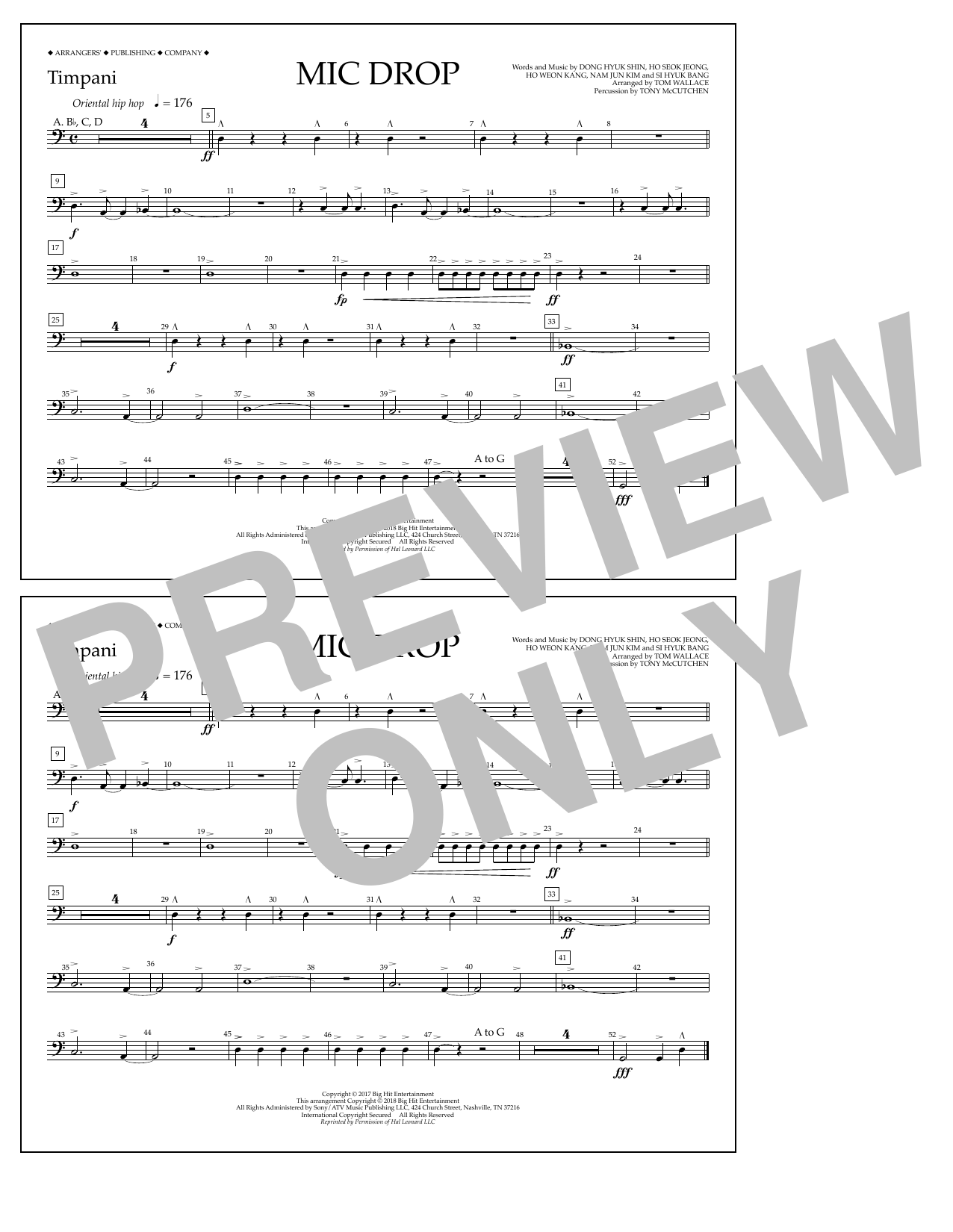 Download or print Tom Wallace Mic Drop - Timpani sheet music, chords and digital score arranged for Marching Band. This Pop score includes 1 page(s).
