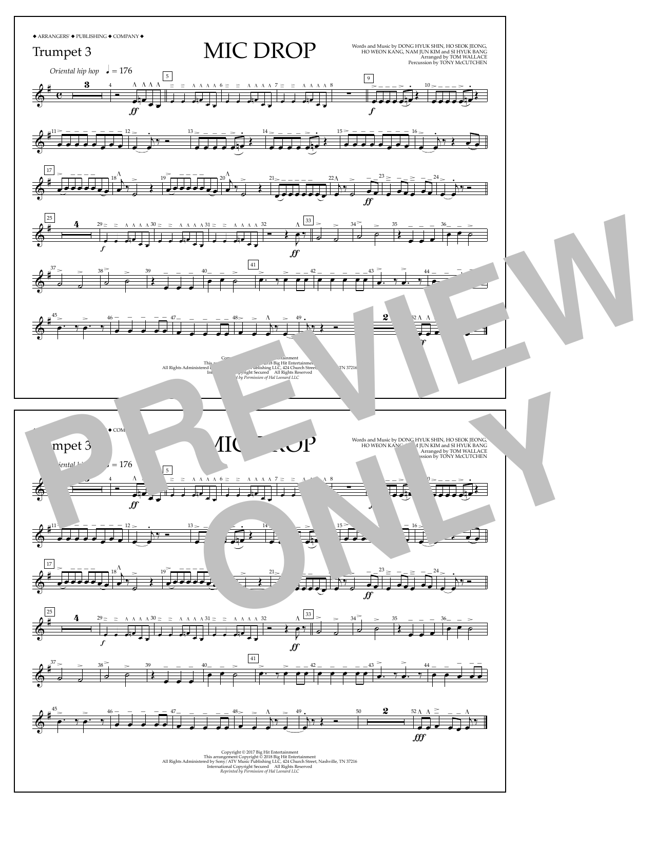 Download or print Tom Wallace Mic Drop - Trumpet 3 sheet music, chords and digital score arranged for Marching Band. This Pop score includes 1 page(s).