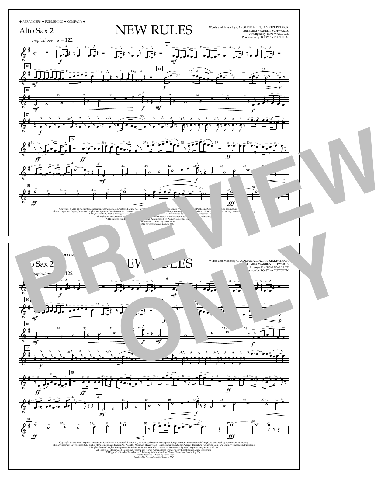 Download or print Tom Wallace New Rules - Alto Sax 2 sheet music, chords and digital score arranged for Marching Band. This Pop score includes 1 page(s).