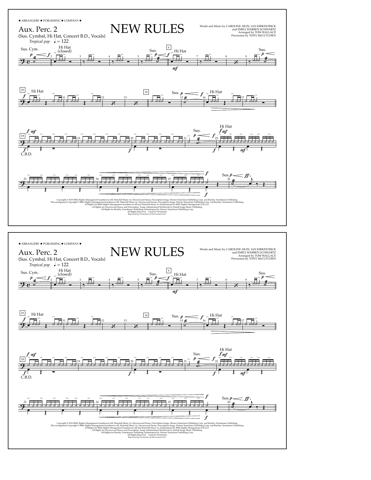Download or print Tom Wallace New Rules - Aux. Perc. 2 sheet music, chords and digital score arranged for Marching Band. This Pop score includes 2 page(s).