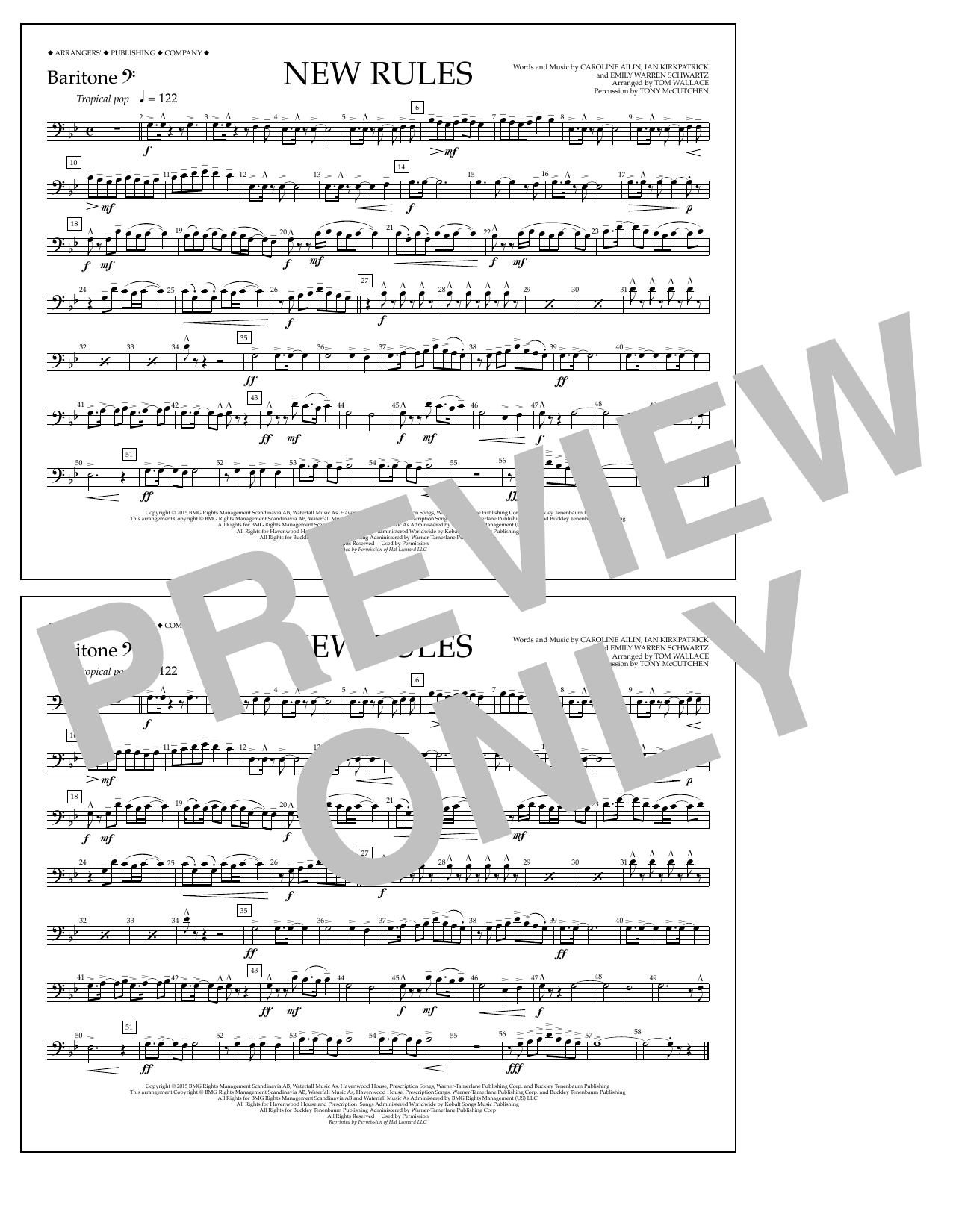 Download or print Tom Wallace New Rules - Baritone B.C. sheet music, chords and digital score arranged for Marching Band. This Pop score includes 1 page(s).