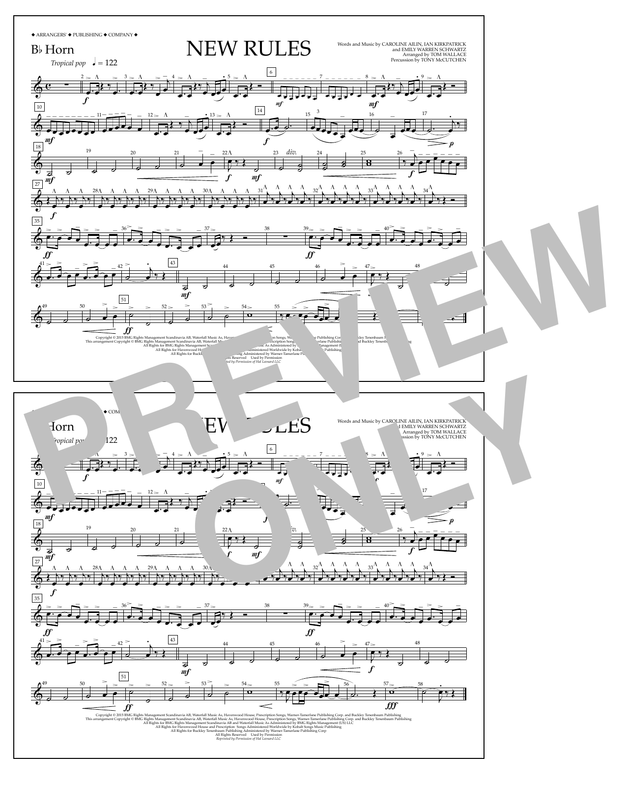 Download or print Tom Wallace New Rules - Bb Horn sheet music, chords and digital score arranged for Marching Band. This Pop score includes 1 page(s).