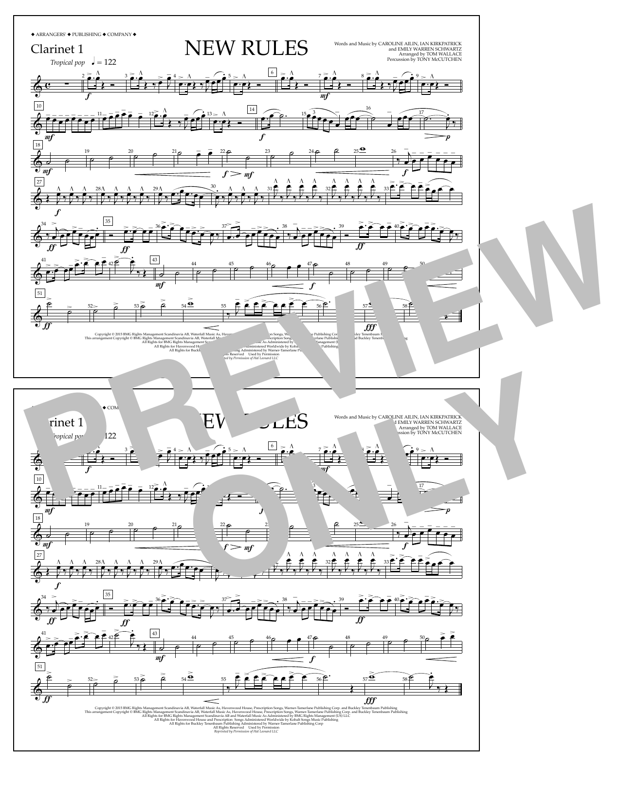 Download or print Tom Wallace New Rules - Clarinet 1 sheet music, chords and digital score arranged for Marching Band. This Pop score includes 1 page(s).