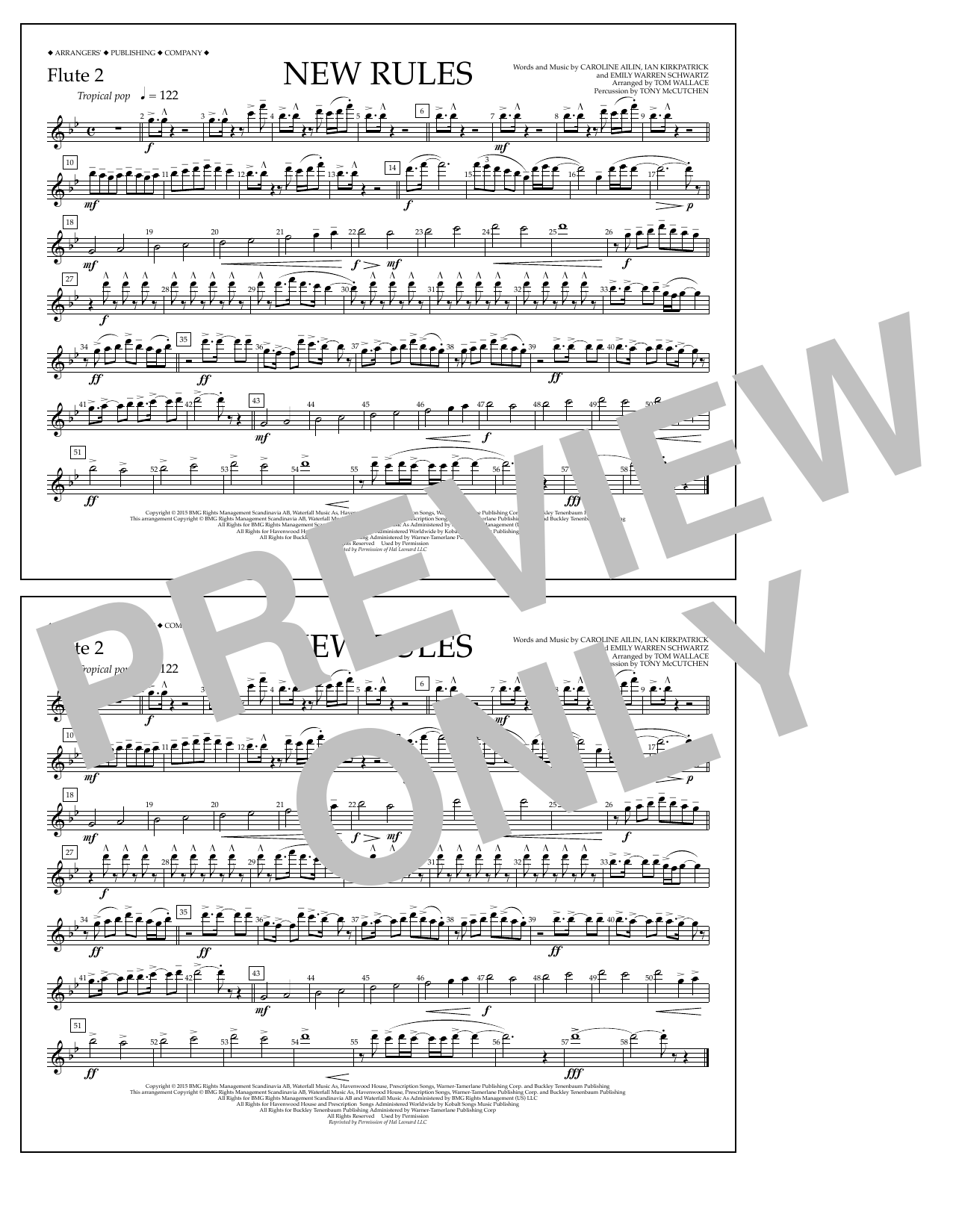 Download or print Tom Wallace New Rules - Flute 2 sheet music, chords and digital score arranged for Marching Band. This Pop score includes 1 page(s).