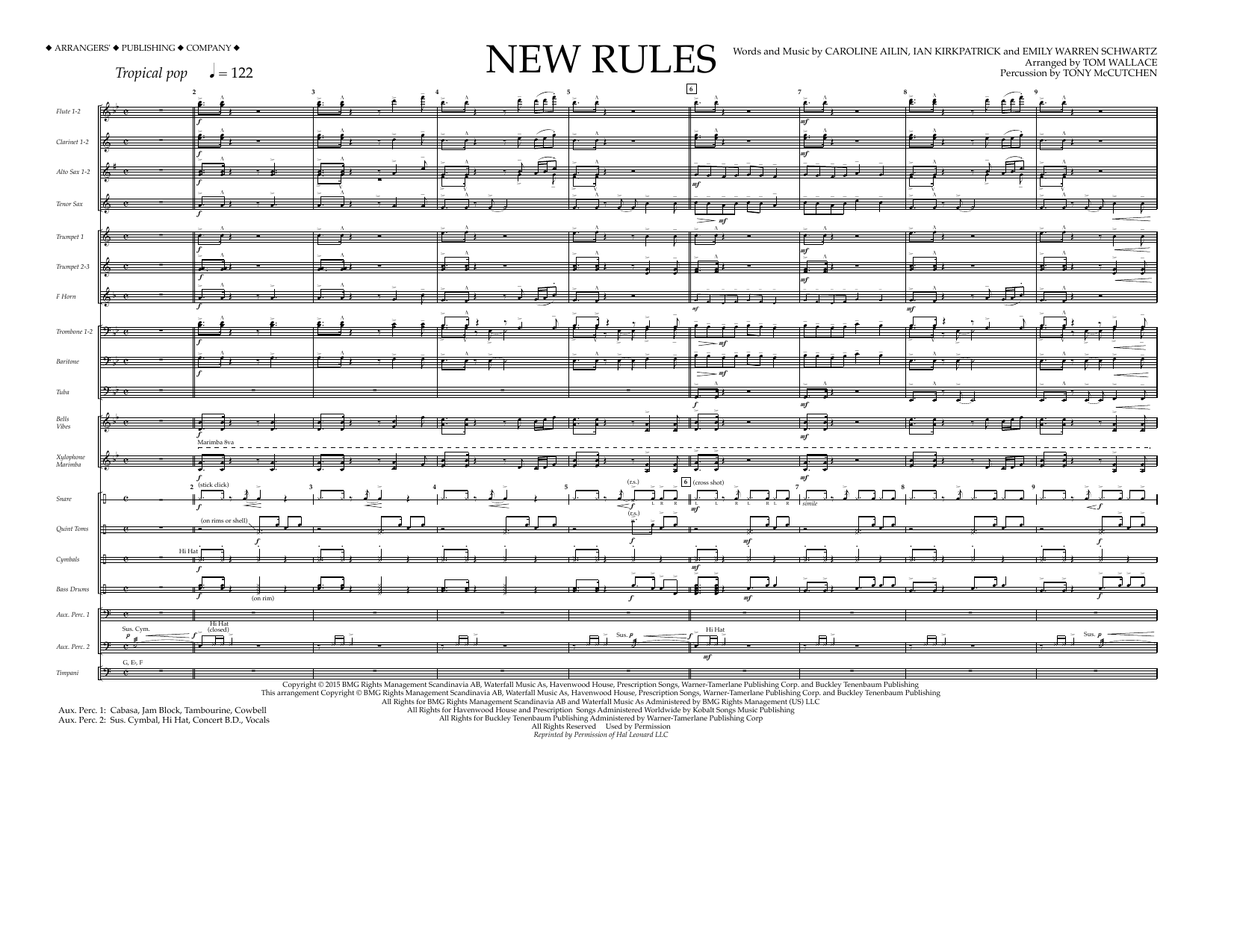 Download or print Tom Wallace New Rules - Full Score sheet music, chords and digital score arranged for Marching Band. This Pop score includes 7 page(s).
