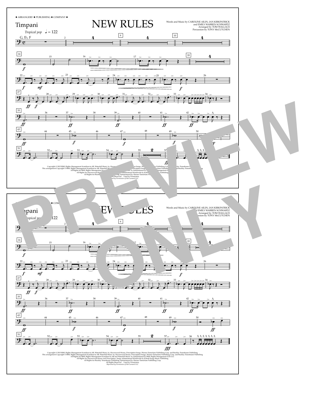 Download or print Tom Wallace New Rules - Timpani sheet music, chords and digital score arranged for Marching Band. This Pop score includes 1 page(s).