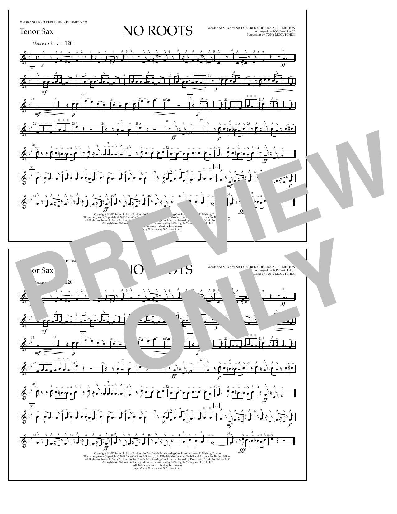 Download or print Tom Wallace No Roots - Tenor Sax sheet music, chords and digital score arranged for Marching Band. This Pop score includes 1 page(s).