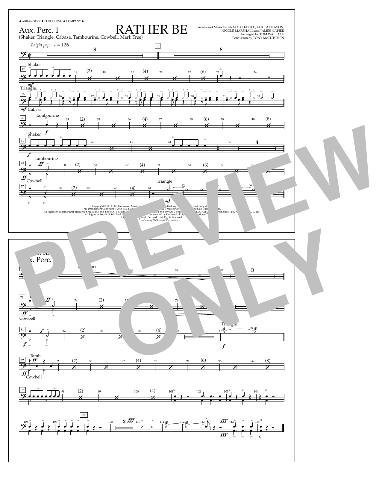 Download or print Tom Wallace Rather Be - Aux. Perc. 1 sheet music, chords and digital score arranged for Marching Band. This Pop score includes 1 page(s).