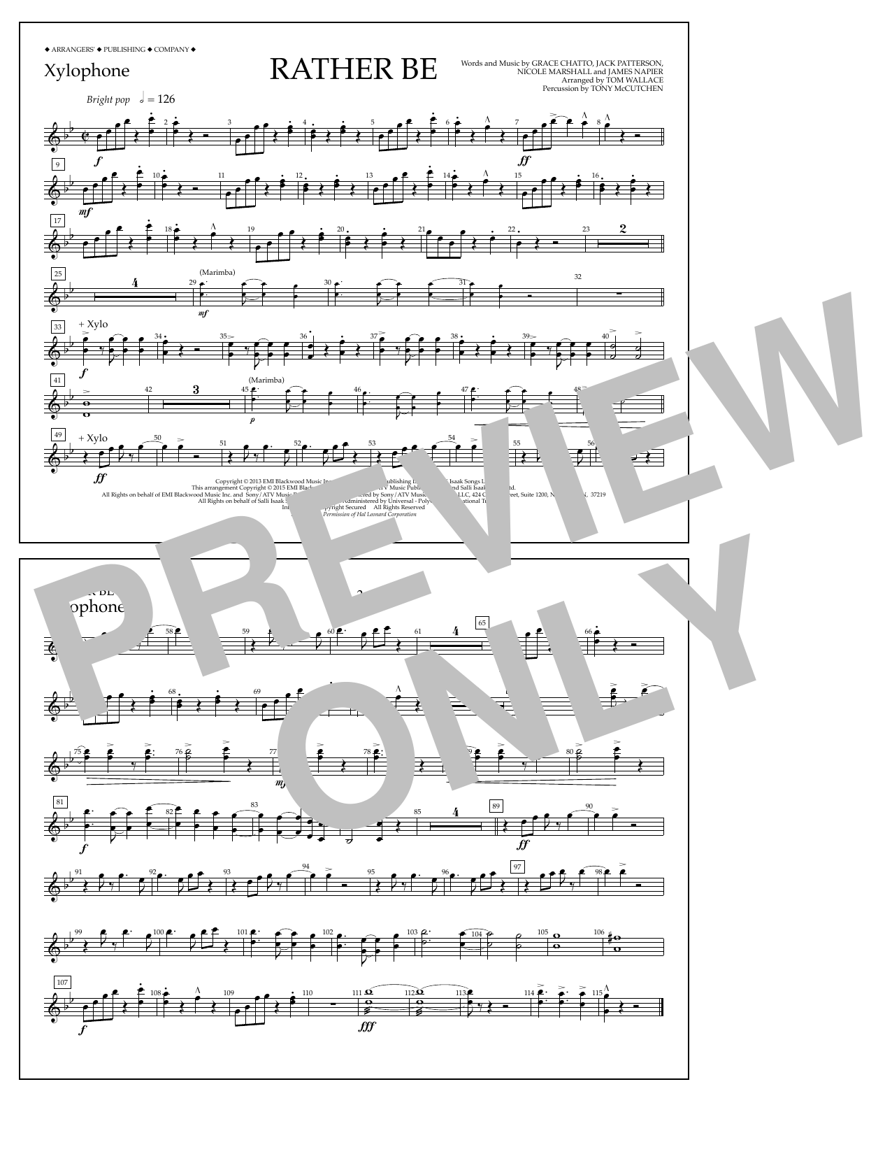 Download or print Tom Wallace Rather Be - Xylophone sheet music, chords and digital score arranged for Marching Band. This Pop score includes 1 page(s).