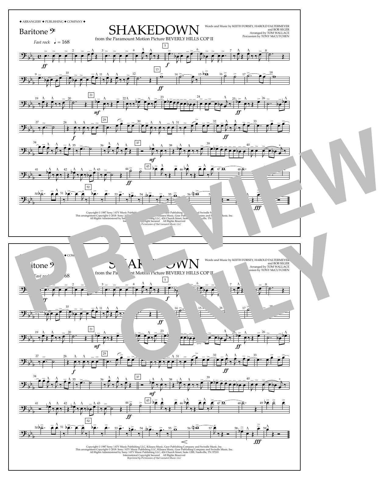 Download or print Tom Wallace Shakedown - Baritone B.C. sheet music, chords and digital score arranged for Marching Band. This Pop score includes 1 page(s).