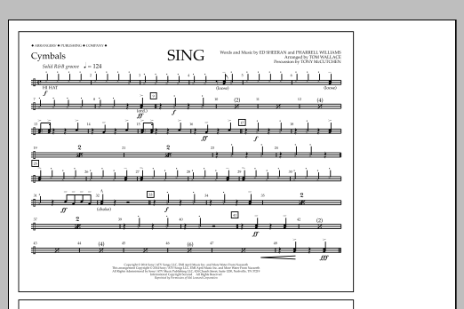 Download or print Tom Wallace Sing - Cymbals sheet music, chords and digital score arranged for Marching Band. This Pop score includes 1 page(s).