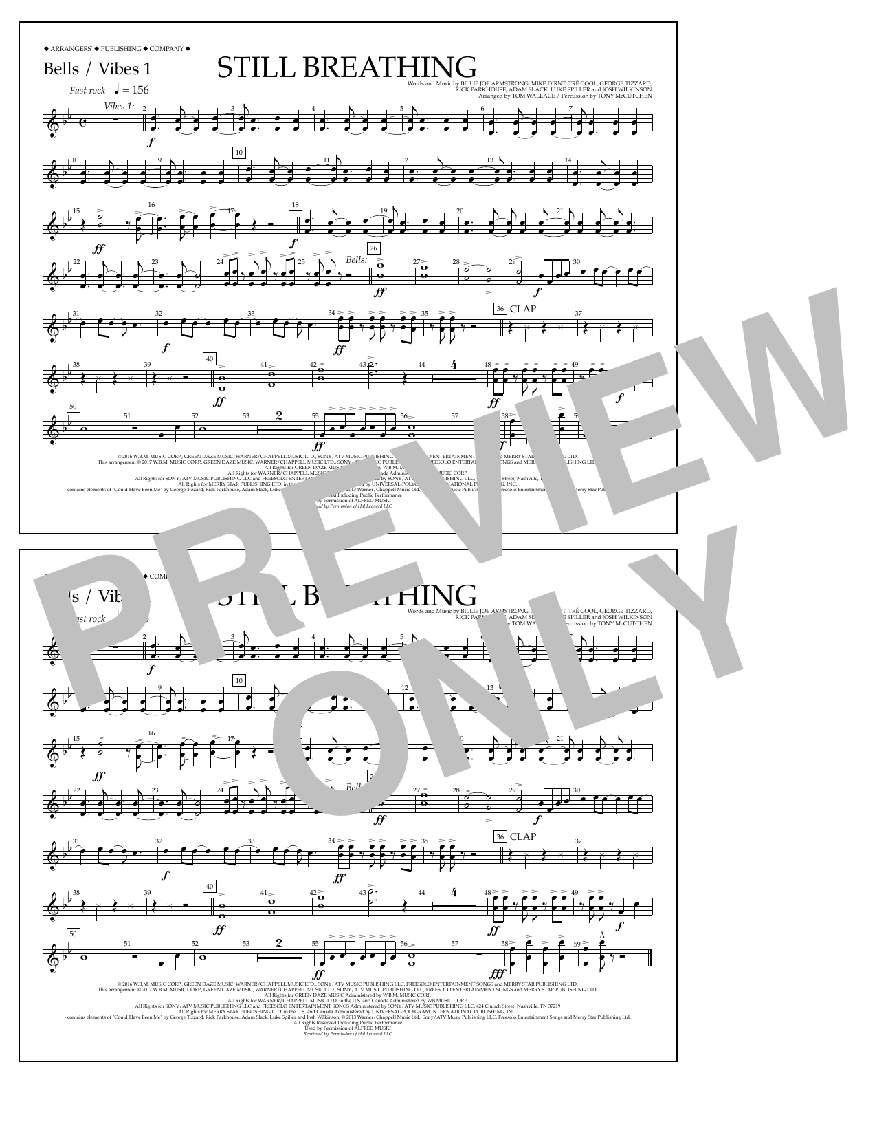 Download or print Tom Wallace Still Breathing - Bells/Vibes 1 sheet music, chords and digital score arranged for Marching Band. This Pop score includes 1 page(s).