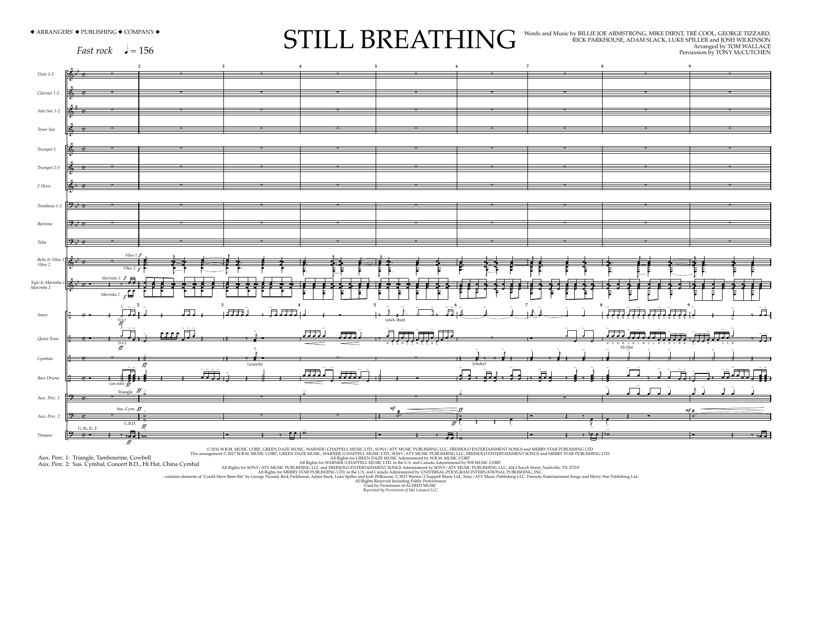 Download or print Tom Wallace Still Breathing - Full Score sheet music, chords and digital score arranged for Marching Band. This Pop score includes 7 page(s).