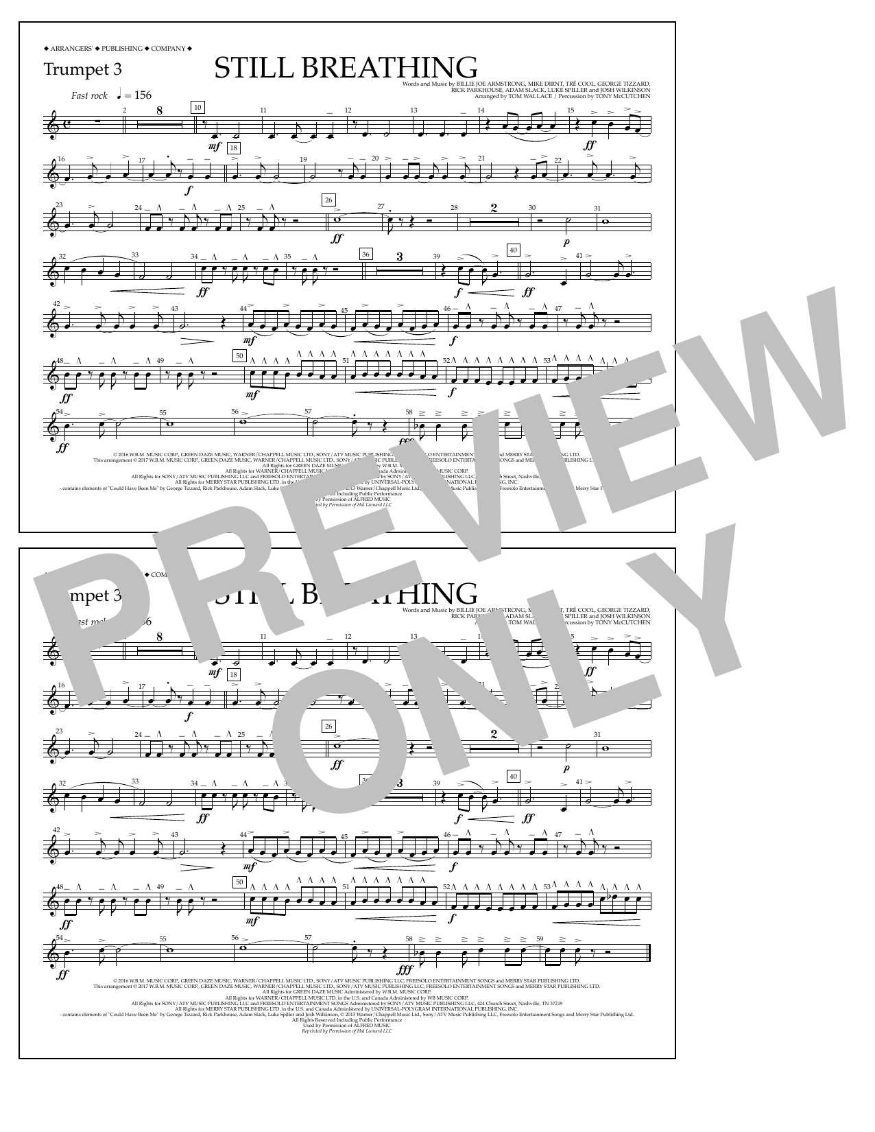 Download or print Tom Wallace Still Breathing - Trumpet 3 sheet music, chords and digital score arranged for Marching Band. This Pop score includes 1 page(s).