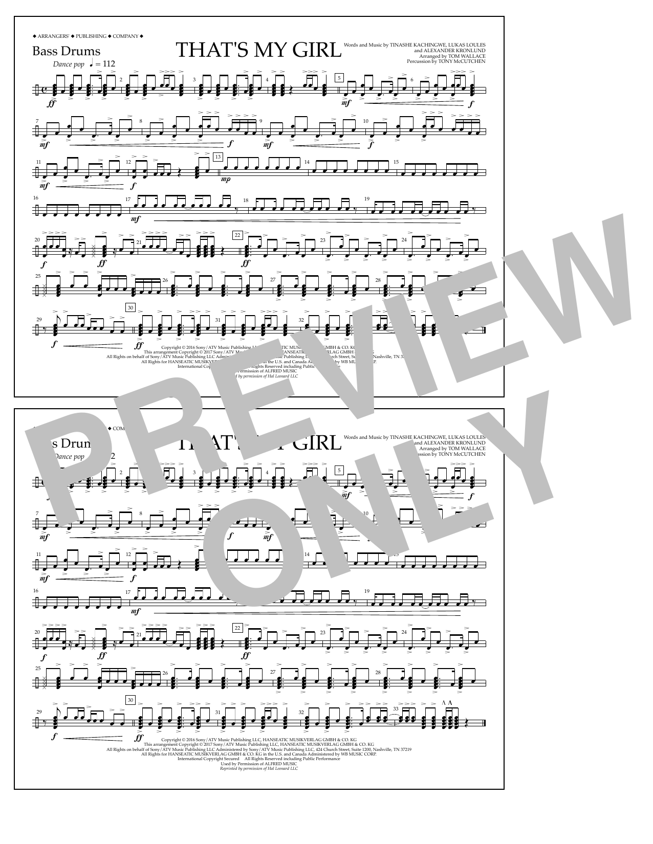 Download or print Tom Wallace That's My Girl - Bass Drums sheet music, chords and digital score arranged for Marching Band. This Pop score includes 1 page(s).