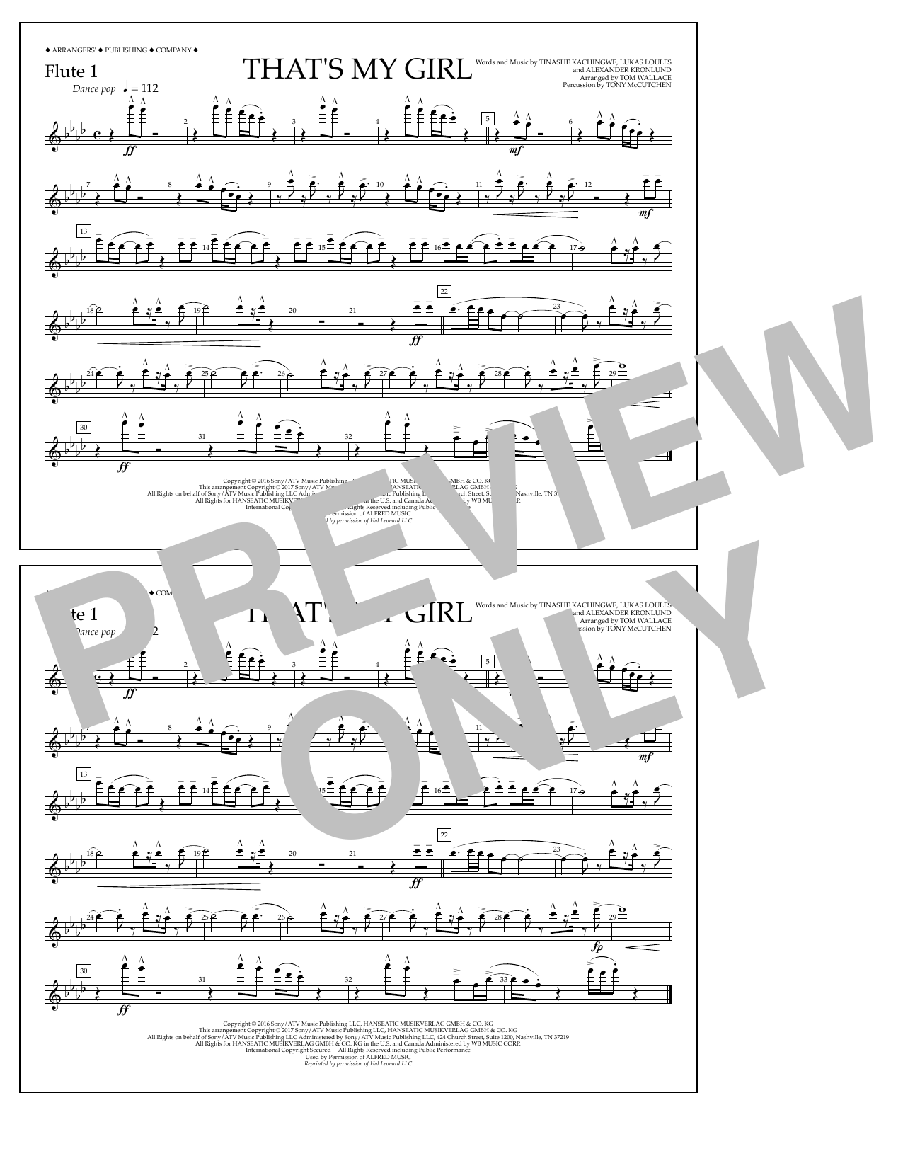 Download or print Tom Wallace That's My Girl - Flute 1 sheet music, chords and digital score arranged for Marching Band. This Pop score includes 1 page(s).
