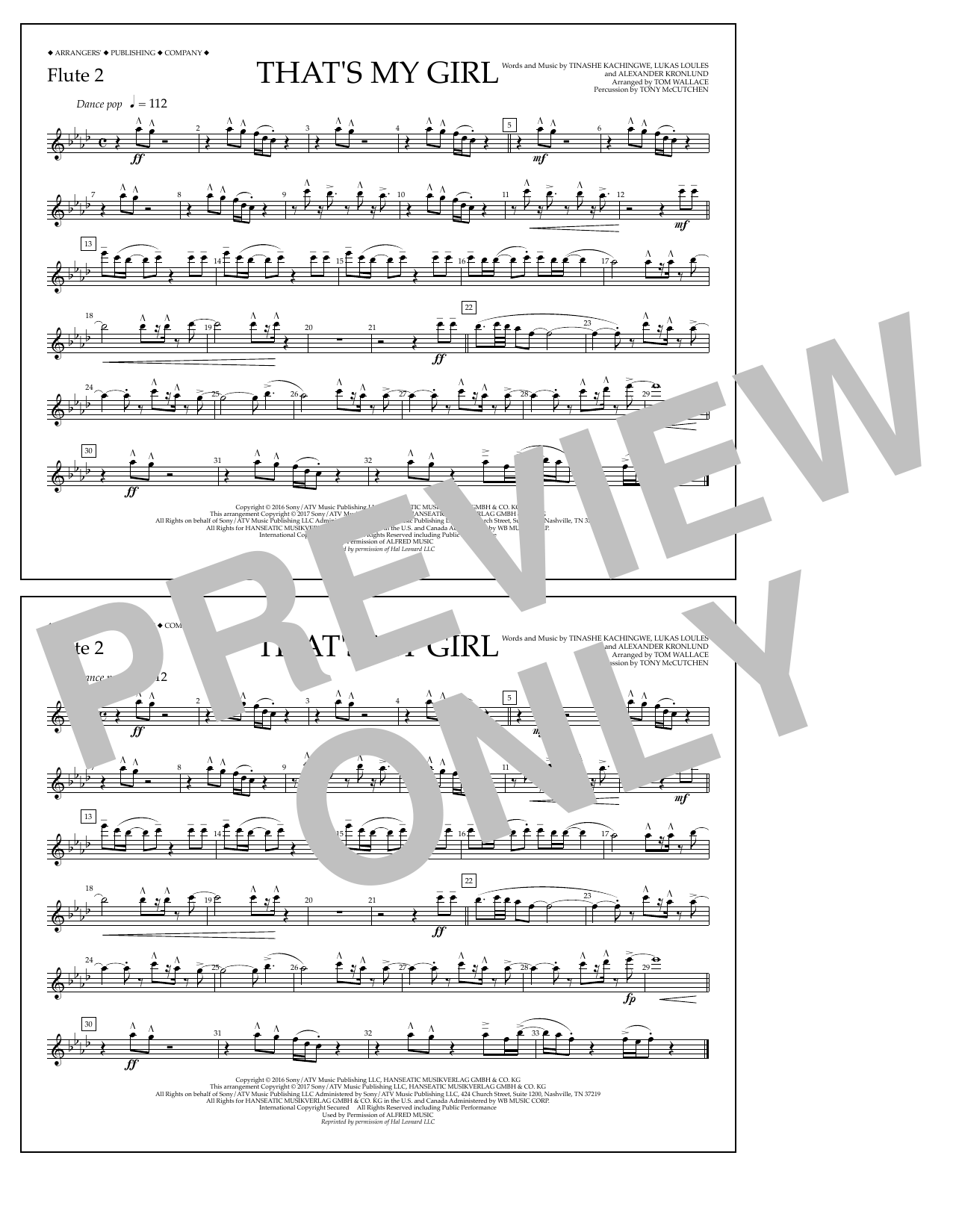 Download or print Tom Wallace That's My Girl - Flute 2 sheet music, chords and digital score arranged for Marching Band. This Pop score includes 1 page(s).