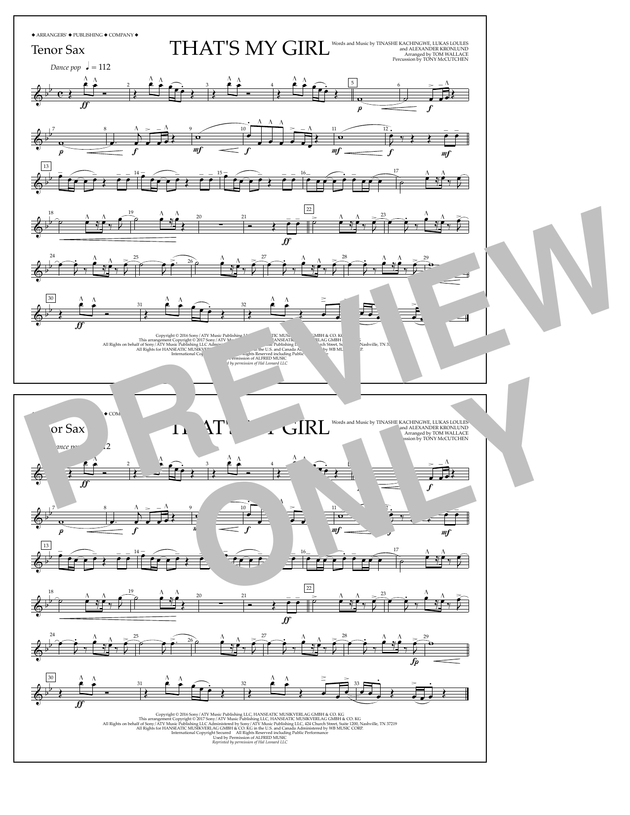 Download or print Tom Wallace That's My Girl - Tenor Sax sheet music, chords and digital score arranged for Marching Band. This Pop score includes 1 page(s).