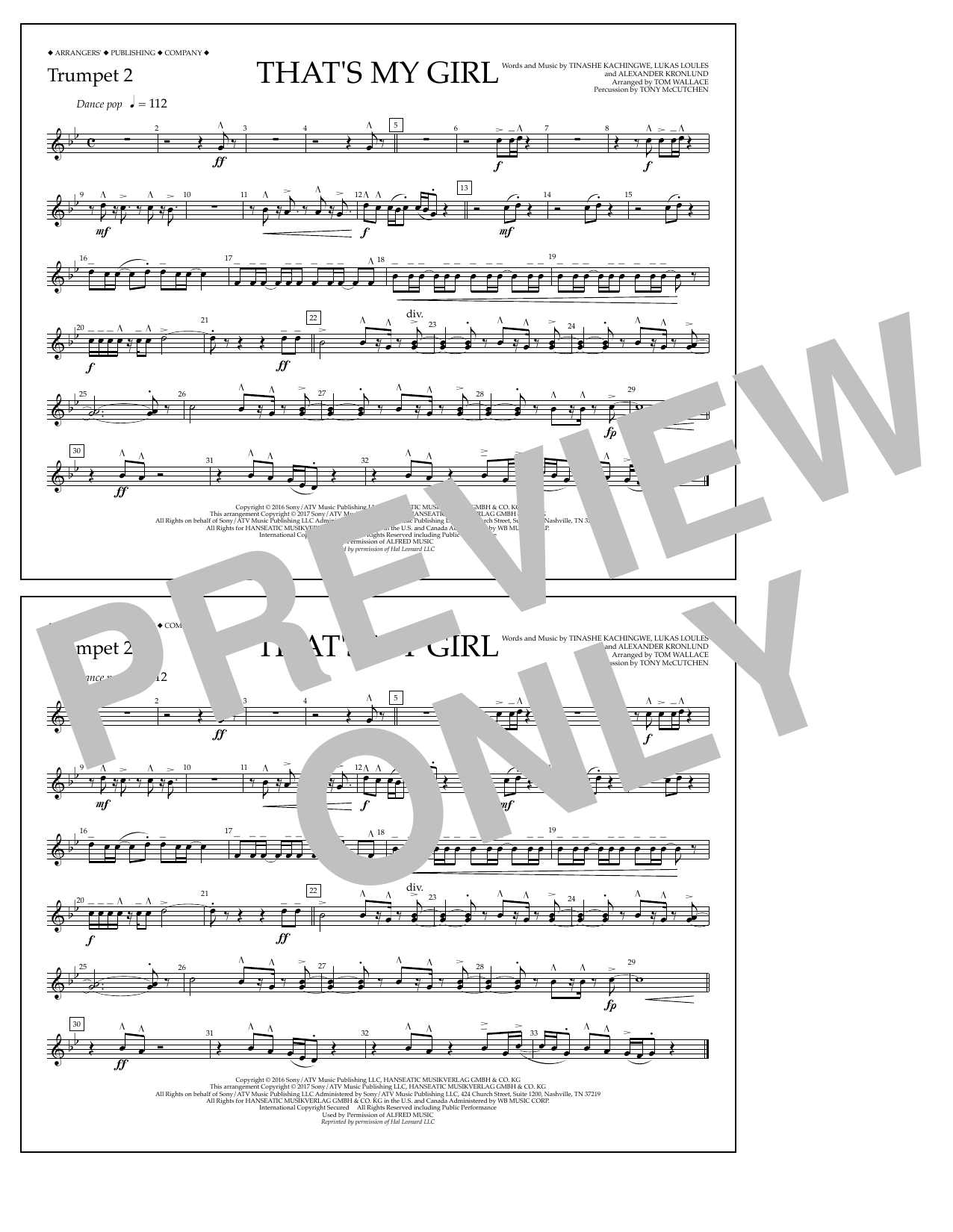 Download or print Tom Wallace That's My Girl - Trumpet 2 sheet music, chords and digital score arranged for Marching Band. This Pop score includes 1 page(s).