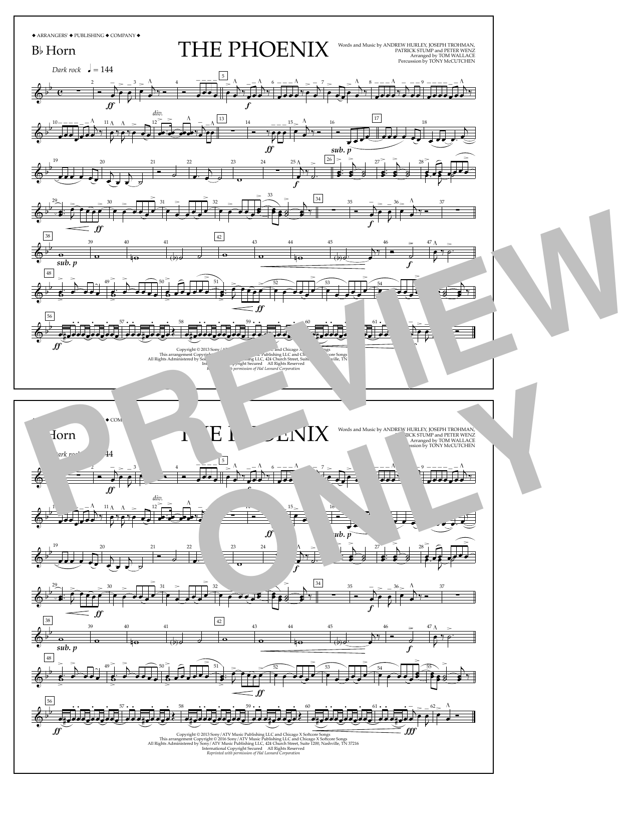 Download or print Tom Wallace The Phoenix - Bb Horn sheet music, chords and digital score arranged for Marching Band. This Pop score includes 1 page(s).