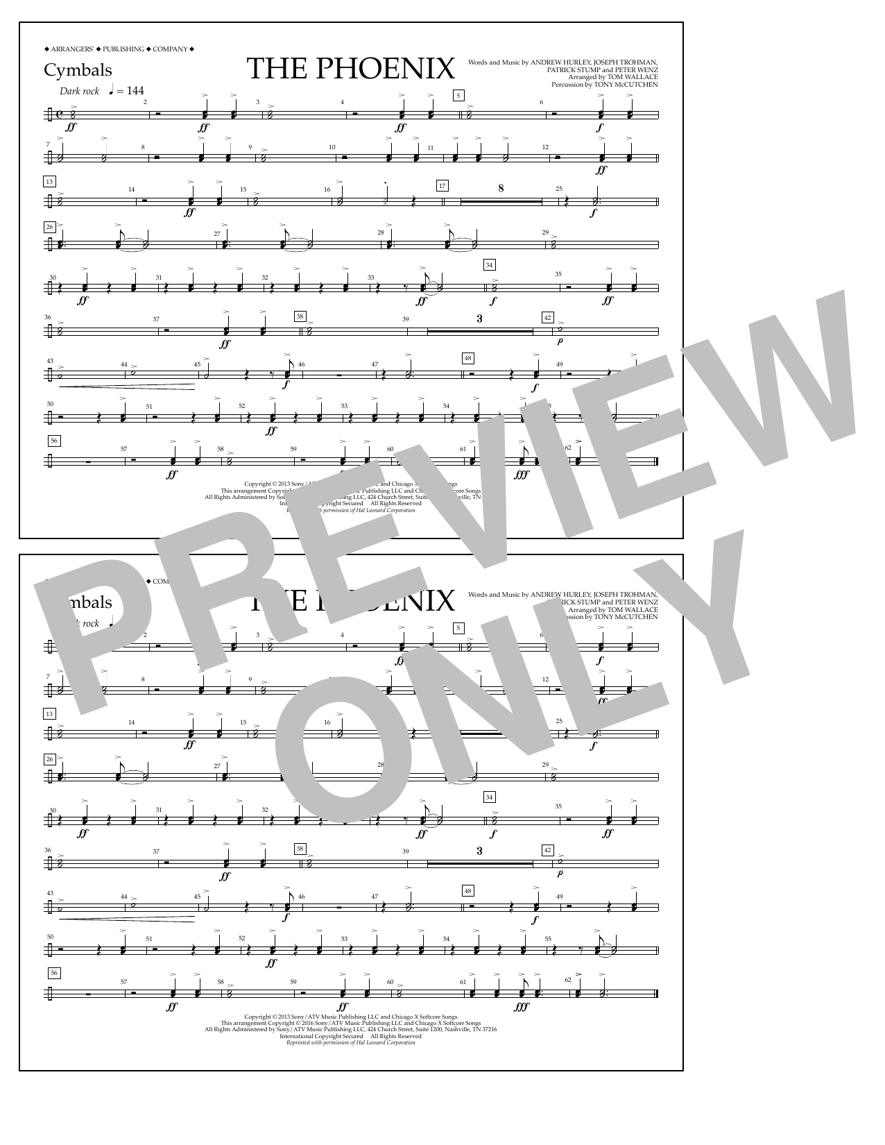 Download or print Tom Wallace The Phoenix - Cymbals sheet music, chords and digital score arranged for Marching Band. This Pop score includes 1 page(s).