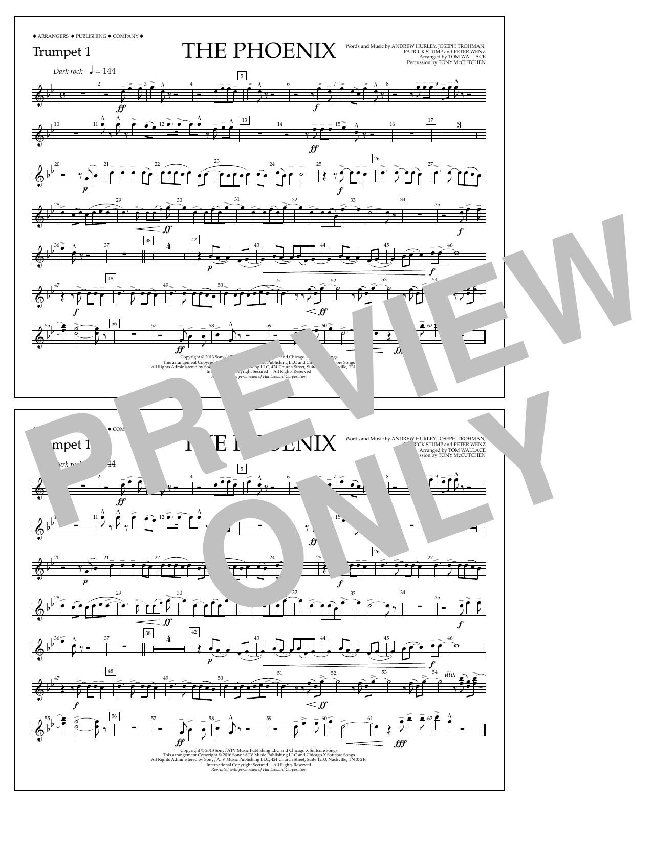 Download or print Tom Wallace The Phoenix - Trumpet 1 sheet music, chords and digital score arranged for Marching Band. This Pop score includes 1 page(s).