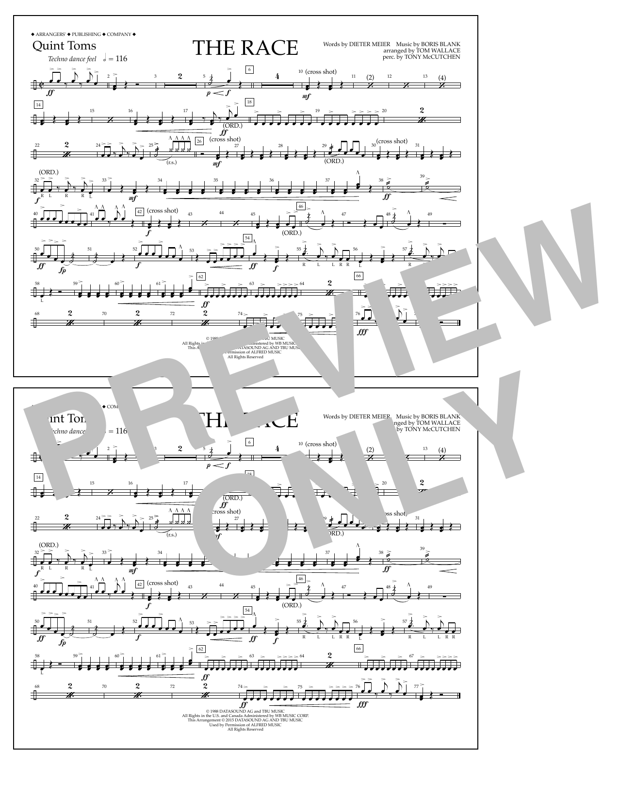 Download or print Tom Wallace The Race - Quint-Toms sheet music, chords and digital score arranged for Marching Band. This Concert score includes 1 page(s).