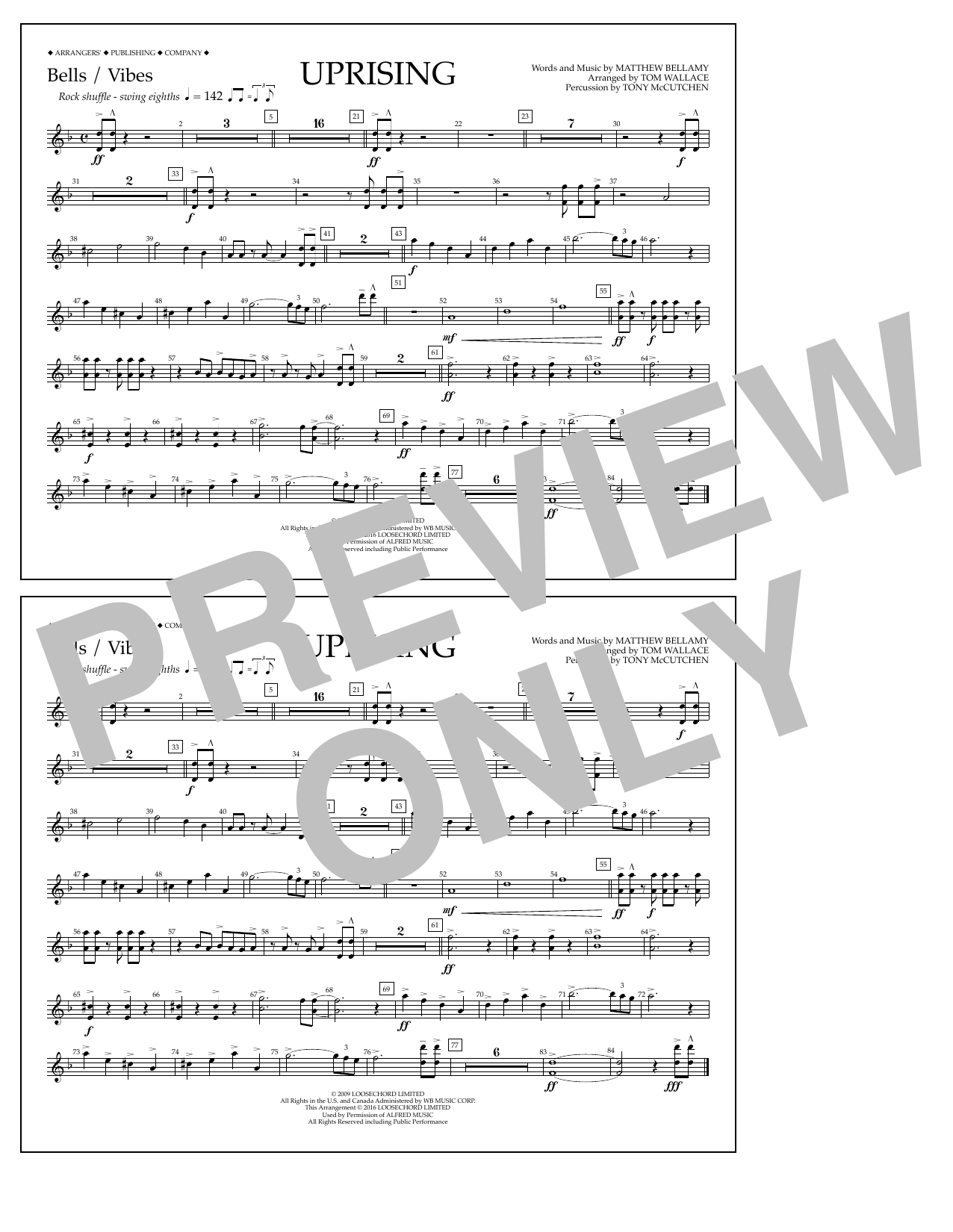 Download or print Tom Wallace Uprising - Bells/Vibes sheet music, chords and digital score arranged for Marching Band. This Pop score includes 1 page(s).