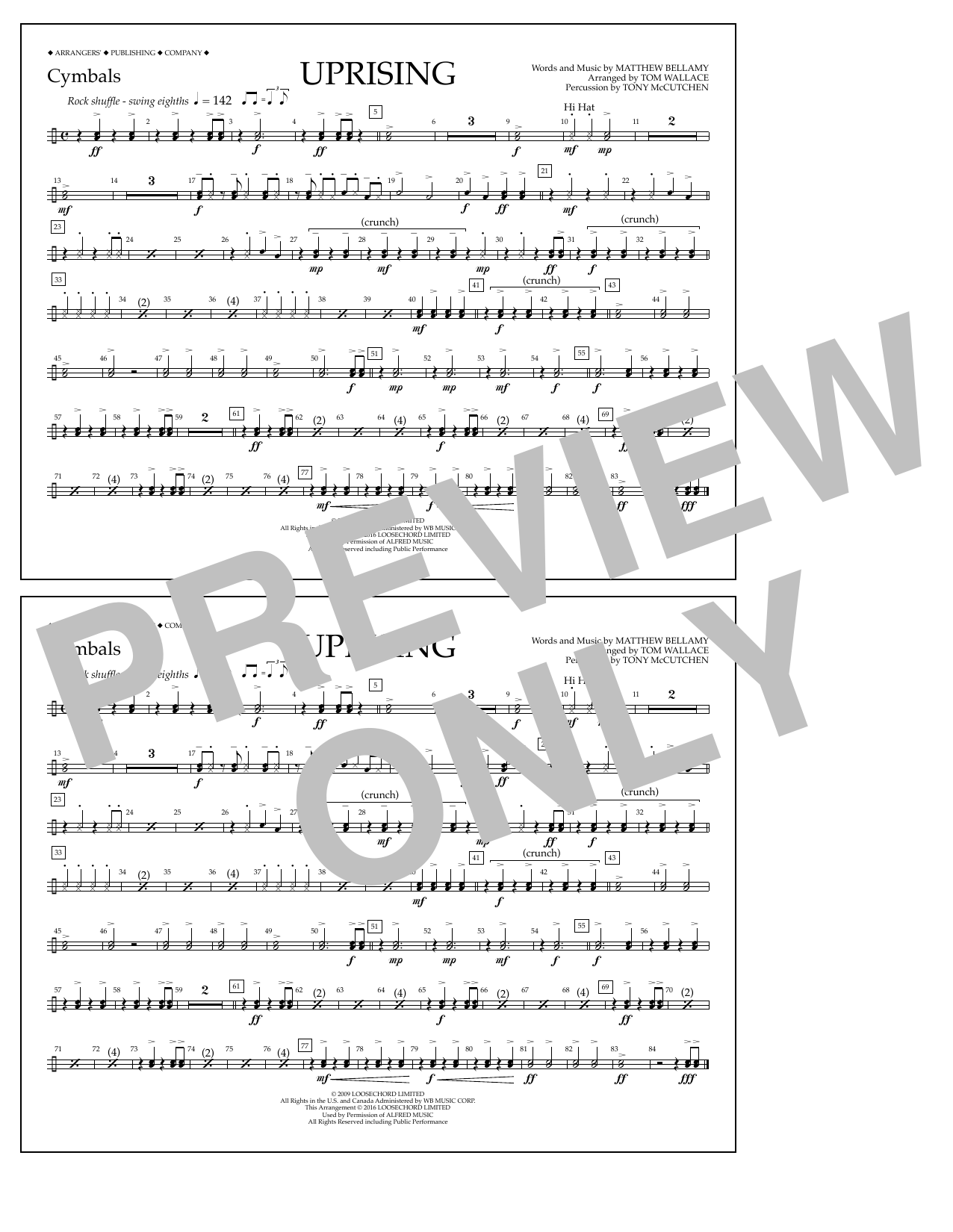 Download or print Tom Wallace Uprising - Cymbals sheet music, chords and digital score arranged for Marching Band. This Pop score includes 1 page(s).
